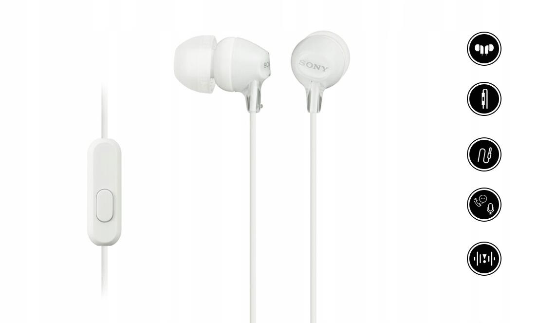Słuchawki Sony MDR-EX15LPW idealnie dopasują się do Ciebie i do twojego sprzętu. Dzięki szerokiemu pasmu przenoszenia usłyszysz każdy dźwięk ulubionego utworu, a wymienne, silikonowe tipsy zapewniają komfort korzystania i idealne dopasowanie.